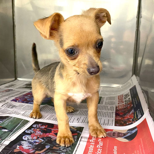 Sex: male, not neutered Age: approx. 6 months Weight: approx. 4 lbs. Meds: -- Note: picked up stray 8/6/25; owner unknown. Hold required by law expires: 8/9/25 RESCUED 8/26/25! THANKS CATHERINE FOR SPONSORING! Shelter ID#: 20041